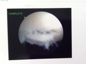 I have the pictures from the arthroscopy. According to the doctor, I had a big gash in my cartilage and then fraying. I guess… The photos sort of look like phases of the moon to me! I should ‘much better’ now, though. That’s the official prognosis.