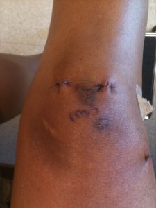 I lost 10 inches today. So what if it was just 10 inches of bandage and padding. I am SOOOO glad to have gotten the bandages from surgery removed this morning. Sure, my knee hurts and I’m kind of stiff, but the bandage was terrible. I couldn’t sleep well because I was basically stuck in one position: lying on my back with my leg propped on a little pillow. Sounds okay but it was uncomfortable. Luckily, it was only for 3 nights and now I’M FREE!!! π