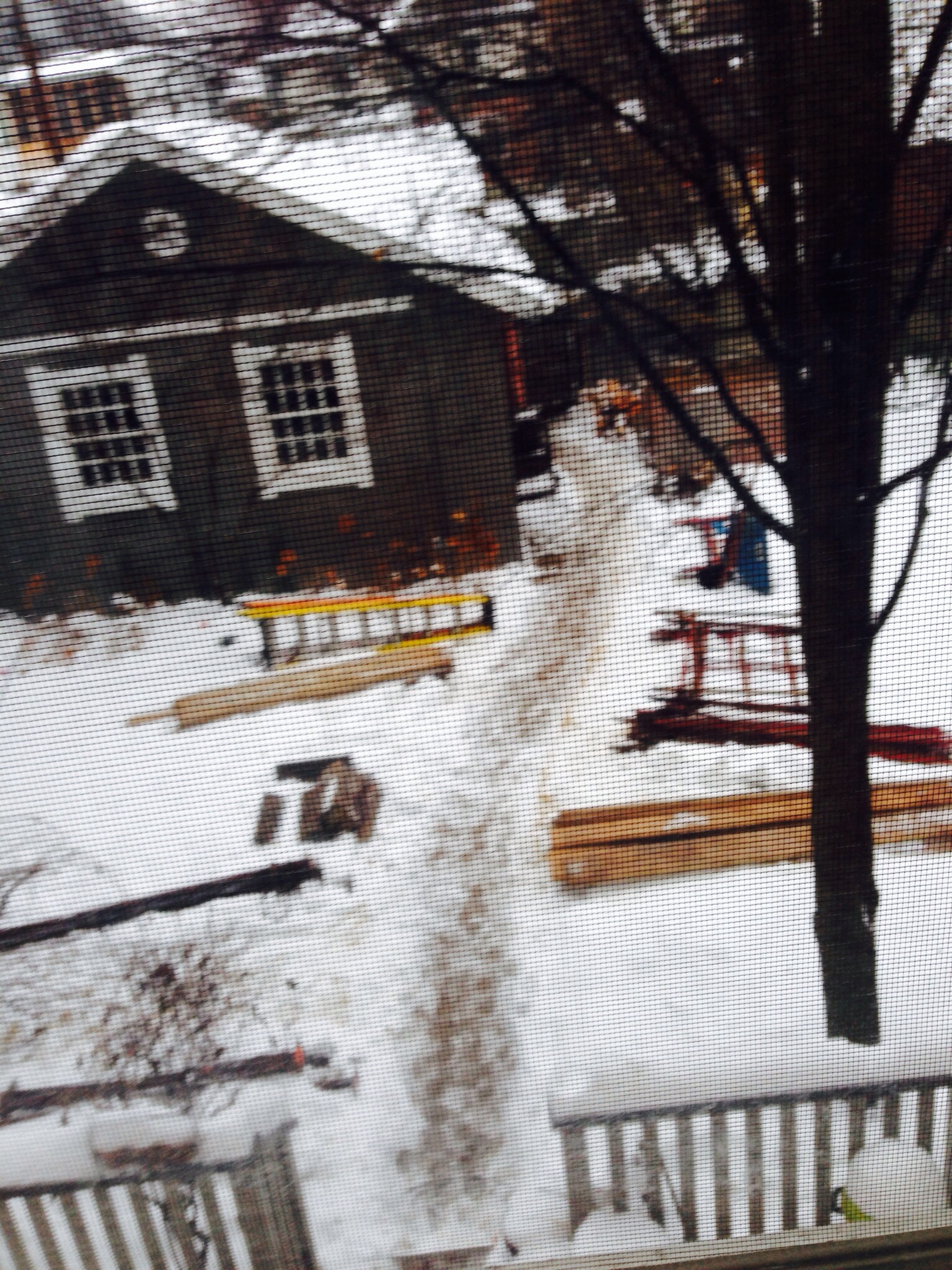 This is what it looked like out my bedroom window for the better of a week (never mind the ‘junk’ in the yard. We are having a remodeling job done and the contractor left that crap in the yard.)