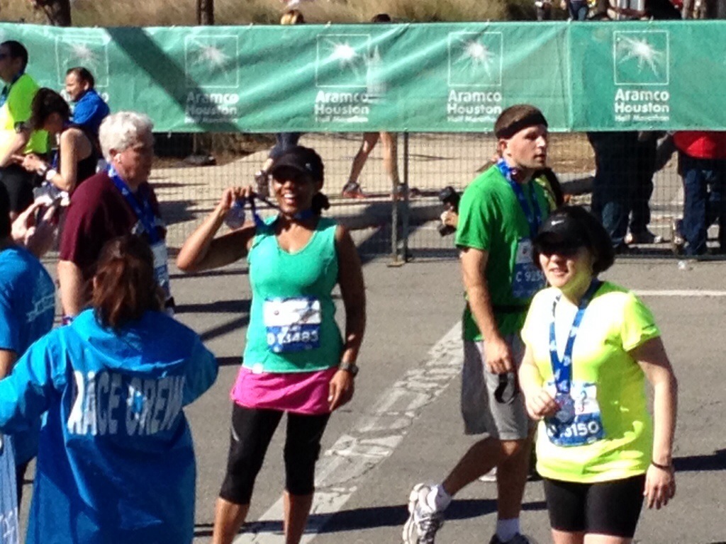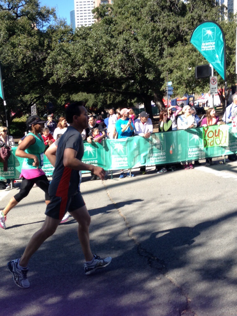 When we got about a mile from the finish, Charlie (my BIL) asking me if I could see the George R. Brown Convention Center (where the marathon began and ended) but I couldn’t. I wish I could have. It would have made me feel better. I really wanted to see that finish!